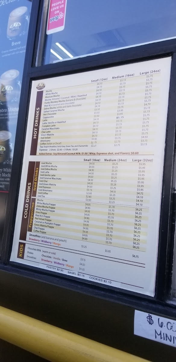 AJ's Coffee Menu